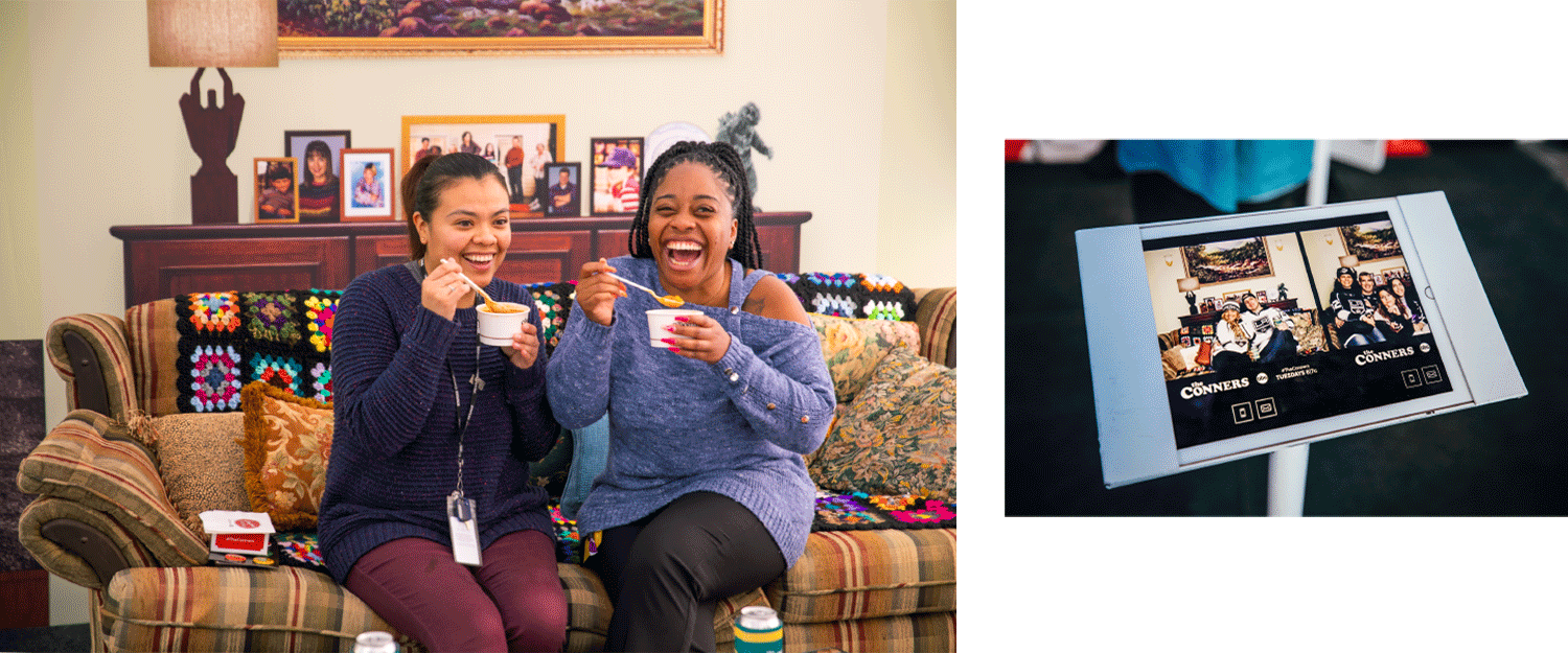 Working with a tight-knit team consisting of a 3D scenic designer, a graphic designer (myself), and two production managers, we strategized, pitched, and designed a fun mobile experience that brought the show’s set to life for fans to enjoy while bringing attention to The Conners’ new season. The strategy involved 3 days of pop-ups in key locations around Los Angeles. The experience featured complimentary food, a recreation of the iconic Conners’ living room, a photo booth, and free giveaways for ample photo and exposure opportunities. As a special surprise, Michael Fishman, one of The Conners’ cast members, came out to promote the new season with fans.